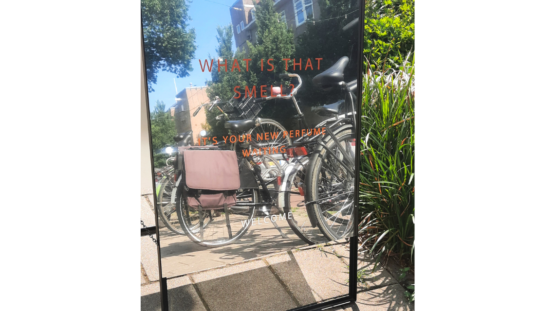 Tucked away on a quiet street far from Amsterdam’s bustling tourist hubs, Perfume Lounge is a retreat for the senses. Outside, an inviting mirrored sandwich board offers a final moment to smooth your hair or refresh your lipstick before stepping inside. Once through the door, visitors enter a world where storytelling, education, and olfactory discovery merge.